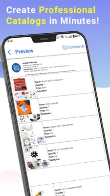 The Catalog Maker app lets you create catalogs easily. You can add product photos, descriptions, prices, and quantities. After that, you can share it as a PDF file with your customers so they can view your catalog immediately. This can help speed up your business growth.