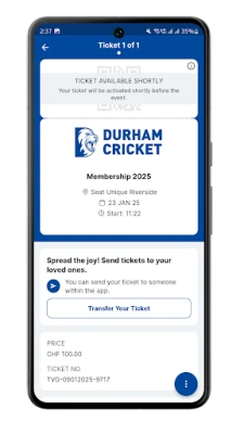 The Durham Cricket Tickets app allows you to purchase and store your tickets for Durham Cricket matches, international games and events. It also provides spectator information for those attending games and events at the Durham Seat Unique Riverside venue.